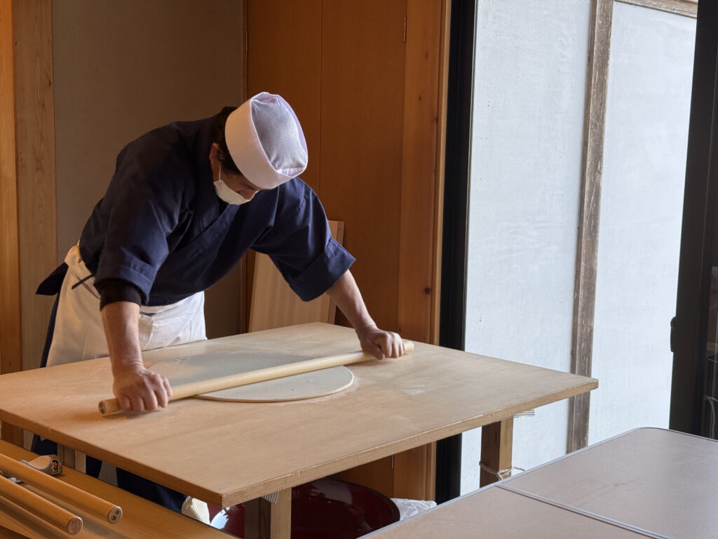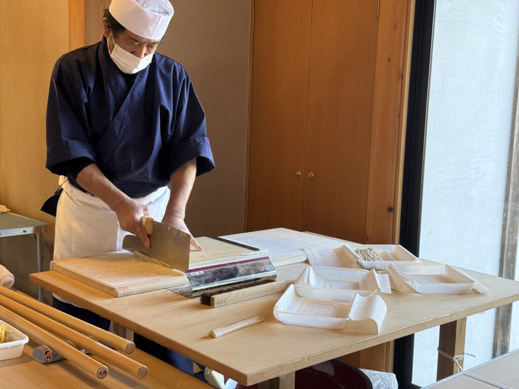 入り口で蕎麦打ちの実演