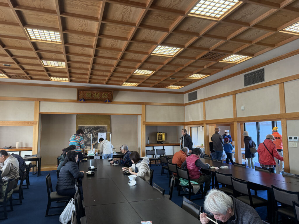 今回は運良く最初の回の食券を受け取れたので、受付のあとそのまま会館へ移動して、そばをいただきました。