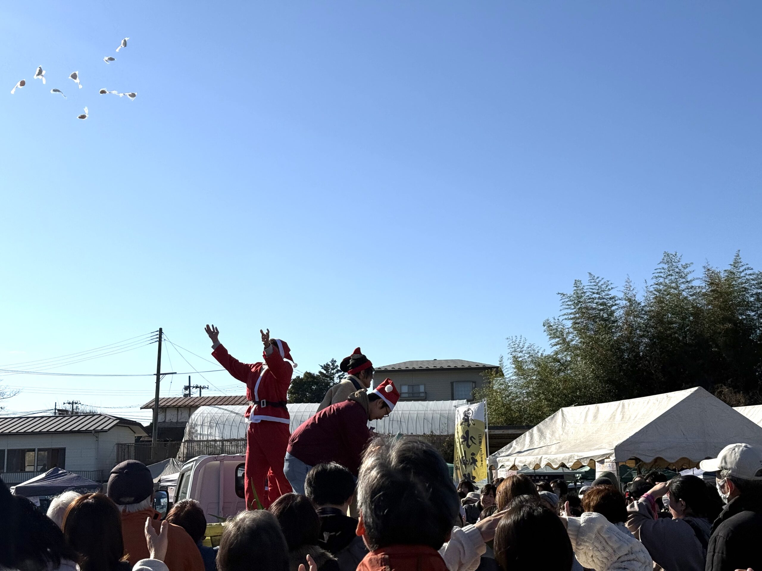 サンタの姿に気づいた人が近づき、それにつられて周りの人もどんどん集まってきていました。