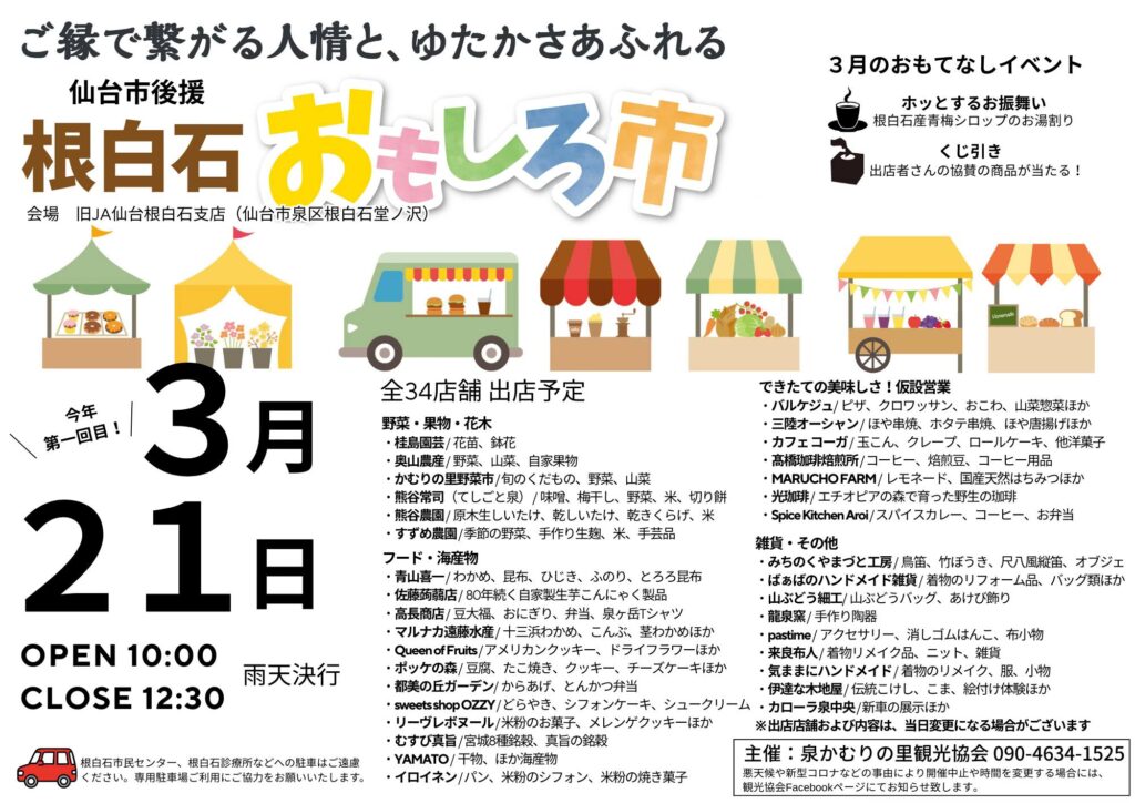 2026年もいよいよ始まります!3月21日(土)は「根白石おもしろ市」へ
